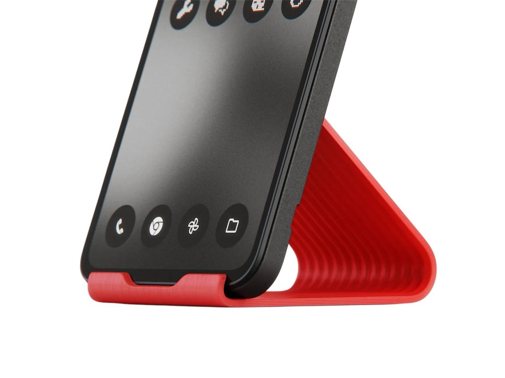 Stojánek na telefon či tablet. Produkt je vytisknut z recyklovatelných plastů PLA.